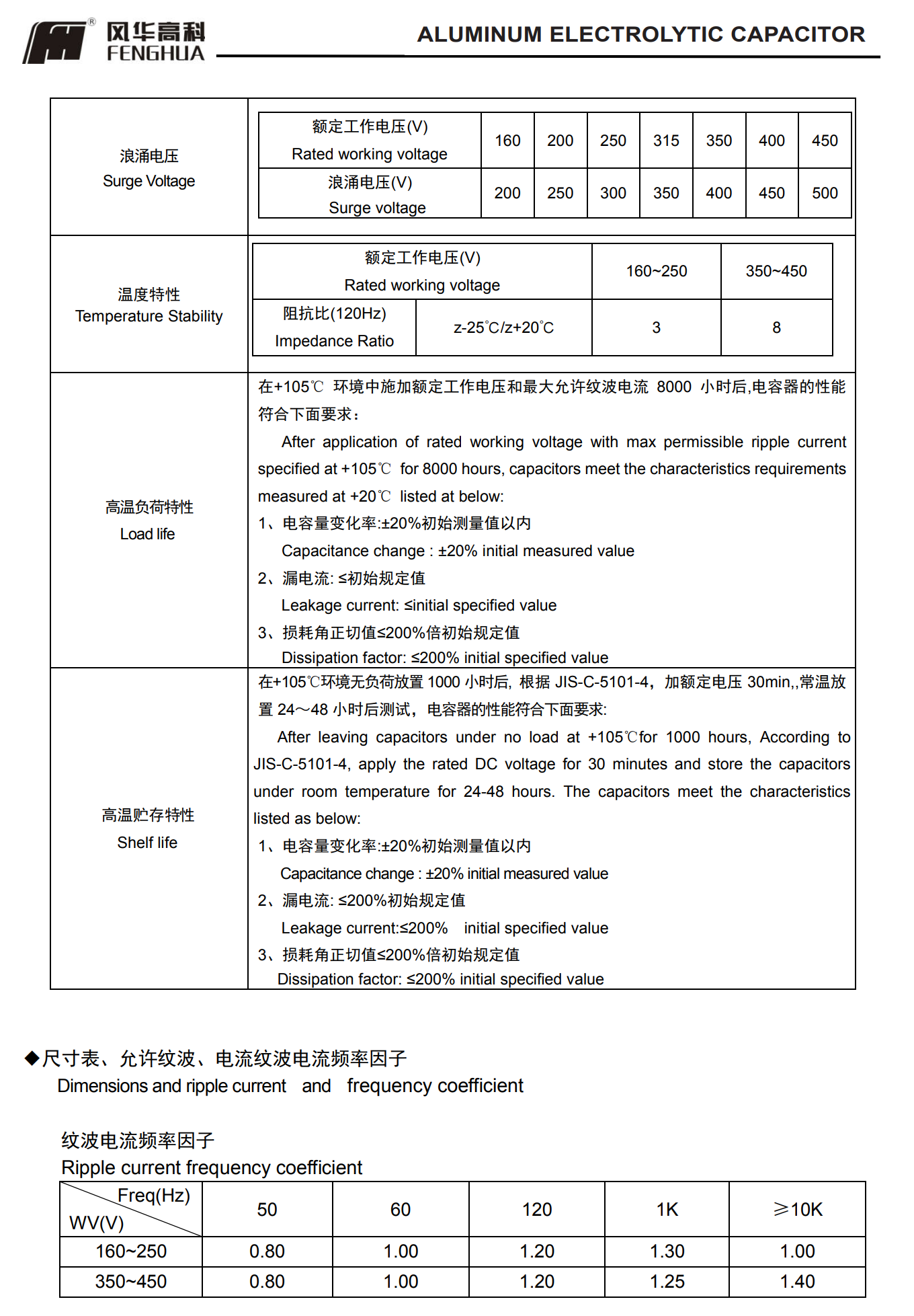 * 寿命: 105℃ 8000 小时