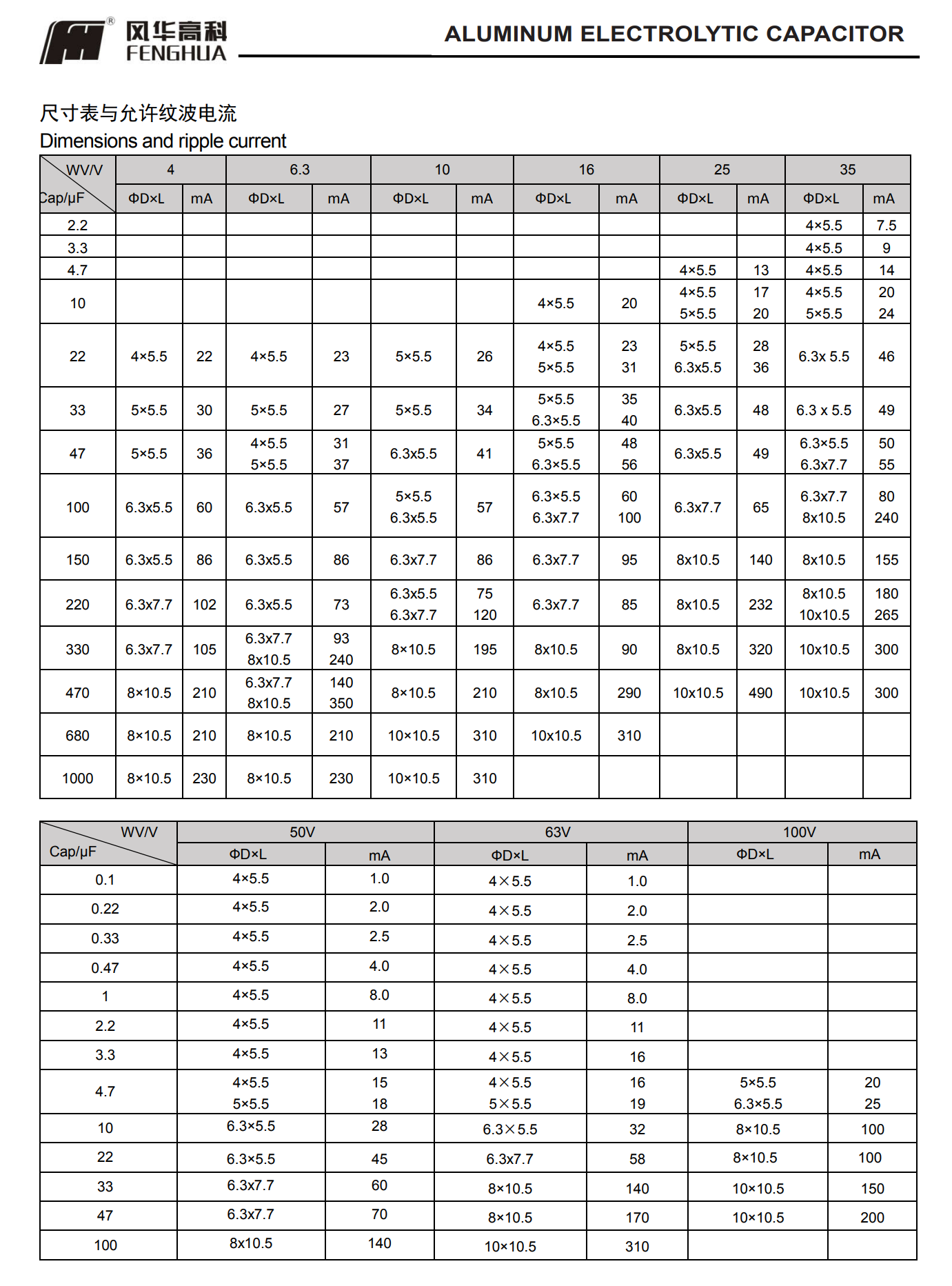 * 寿命: 105℃ 2000 小时