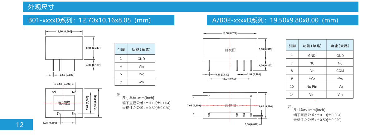 定压1/2W DIP8/DIP14封装隔离非稳压输出系列