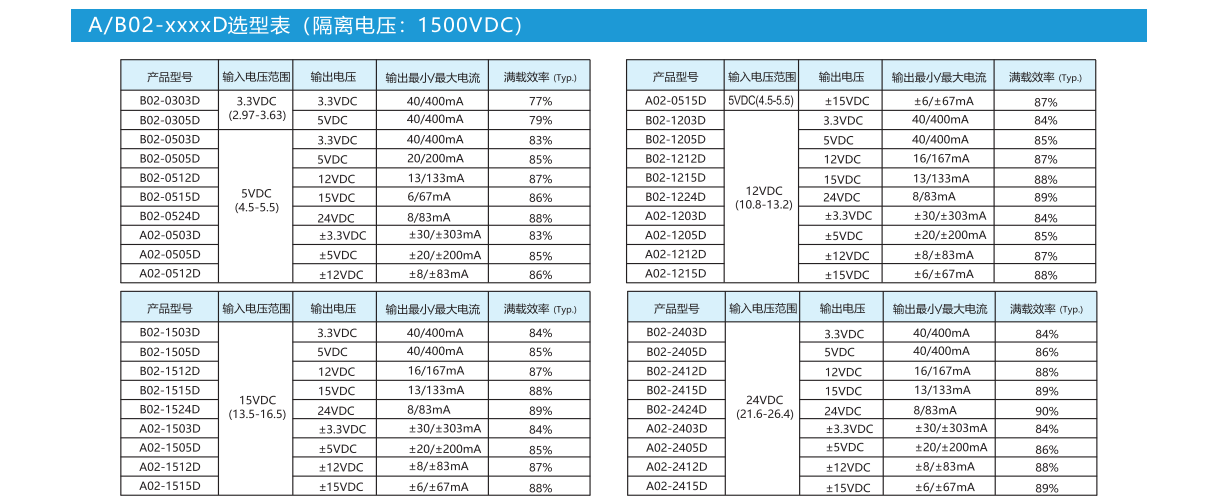 产品特性:封装形式:DIP8/DIP14温度范围:-40℃~+105℃.隔离电压:1500VDC满载效率:89%(典型)引脚标准:国际标准引脚方式应用领域:电力、工控、通信、物联网、汽车等