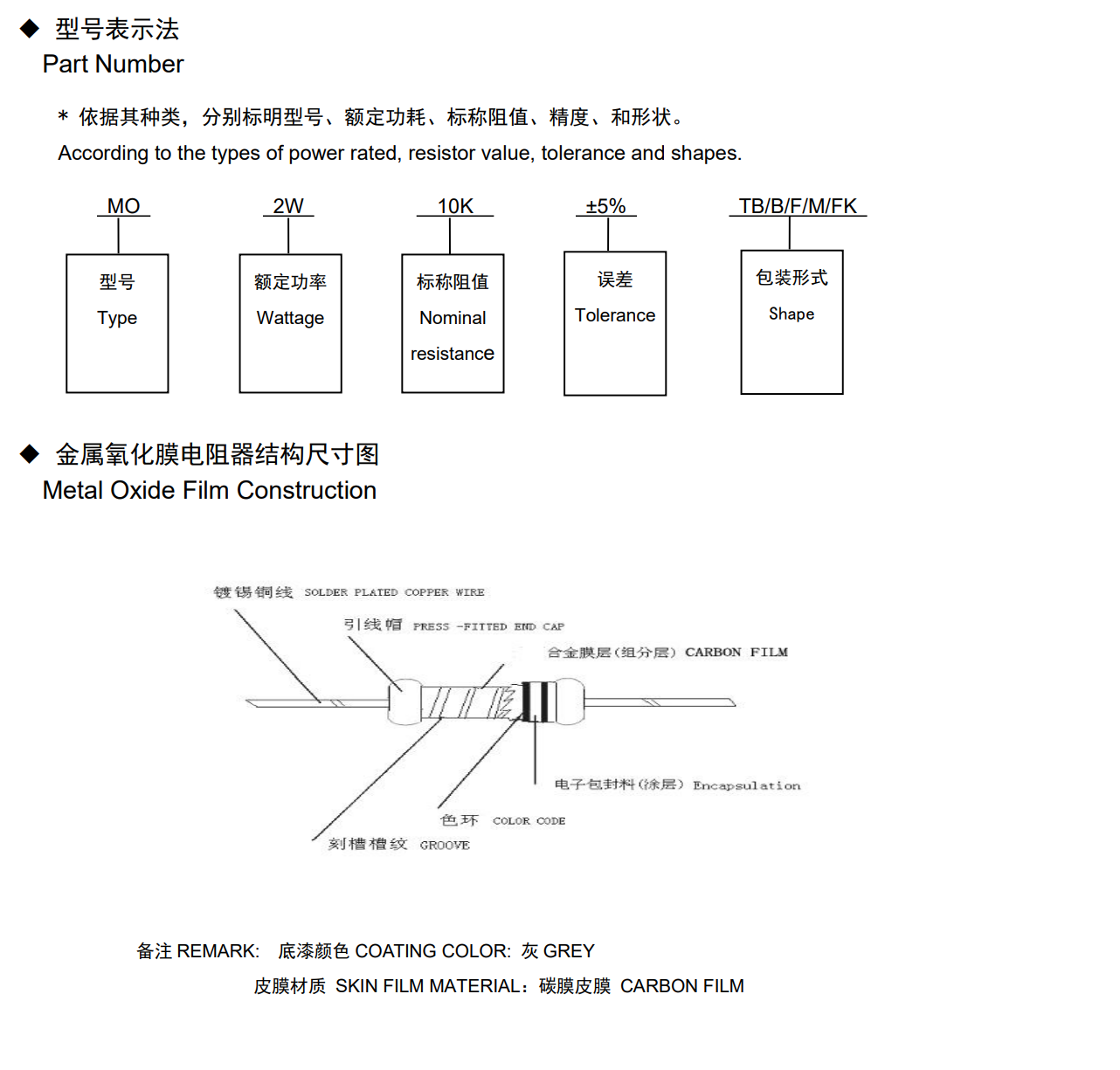 金属氧化膜电阻◆特征* 阻值范围宽,温度系数小、散热性能好、使用环境温度高、阻燃特性好、过负荷特性好* 环保无铅产品◆应用* 适用于各种交、直流电子电路中